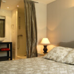 Vous disposez également d’une chambre double avec un lit en 160 cm et sa salle d’eau privative. La seconde chambre avec 2 lits en 80 cm comprend une douche à l’italienne en marbre. Les toilettes sont indépendantes.