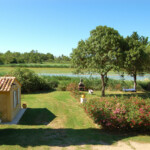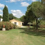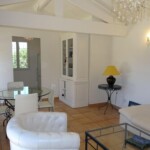 La pièce principale est un salon séjour avec poutres apparentes et une cuisine intégrée. Cet espace s’ouvre sur une terrasse privative de 25m² avec tonnelle ombragée. Jardin privé de 700 m² et vue sur les rizières de Camargue.