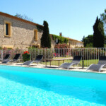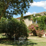 Une terrasse et un jardin privés avec mobilier de jardin et 1 barbecue. Accès libre à la piscine commune et clôturée de 11 x 5,5m.