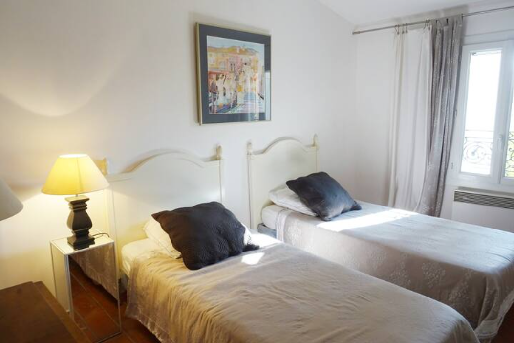 Une première chambre double se compose d’un lit à baldaquin en 160cm et d’une penderie, une deuxième chambre double comprend 2 lits en 90cm et une penderie.